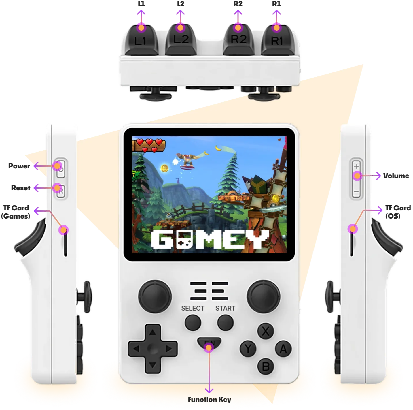 With dual TF (microSD) card independent system and game storage design, you don't have to worry about copying games or upgrading the system. Everything is ready to play right out of the box, making it super easy to get started.